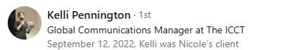 “Infectious enthusiasm. This has been my experience every time I have had the pleasure to work with Nicole. She is wonderfully creative and incredibly knowledgeable with the mechanics and complexities of marketing. With Nicole, you can lean into her understanding of current marketing trends and the language of today's consumer. She often knew more of what I was looking to achieve in messaging than I did because of her total awareness of trends. This understanding also helped her effectively navigate me through my own chaos of ideas to a place of clear goals and direction for marketing projects. Nicole is a superb listener, reliable and professional and an absolute delight to know and work with. She is a 15 out of 10 recommend :)”
